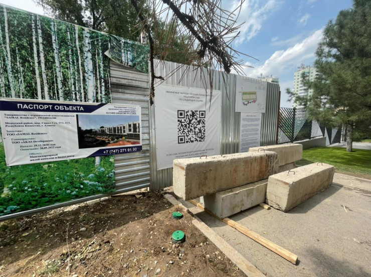 "По поручению акима города Алматы по улице Мендыкулова устанавливается знак о запрете проезда грузоподъемных машин, также поручено закрыть въезд на строительную площадку объекта "МЖК с подземным паркингом, нежилыми помещениями для обслуживания населения" расположенного по адресу: микрорайон Самал-3, участки 37/2, 37/3. В настоящее время Управлением градостроительного контроля города Алматы заезд/выезд на объект по вышеуказанному адресу закрыт бетонными блоками", - говорится в сообщении.