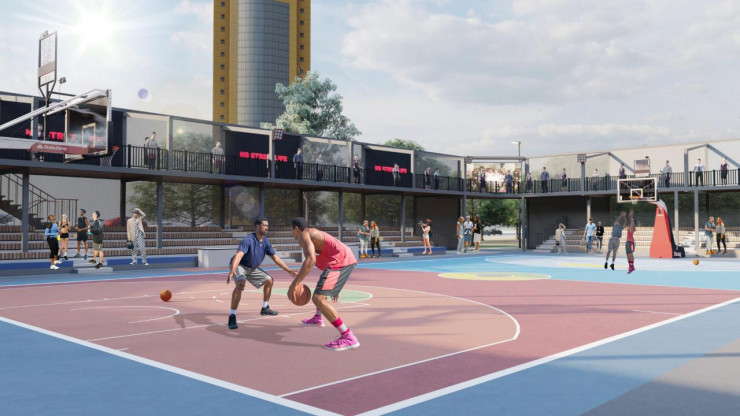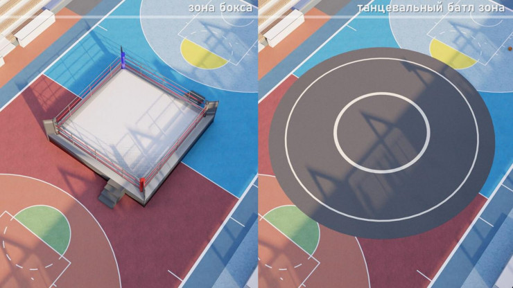 На площадке будут проводить соревнования по баскетболу, футболу, турниры по боксу и танцевальные состязания. Зимой арену могут трансформировать в ледовый каток.
