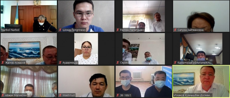 Куанышбек Искаков на судебном процессе в режиме онлайн (крайний нижний левый угол)