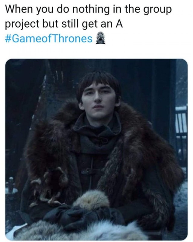 Подпись: "Когда ты ничего не делаешь в групповом проекте, но тоже получаешь пятерку".
