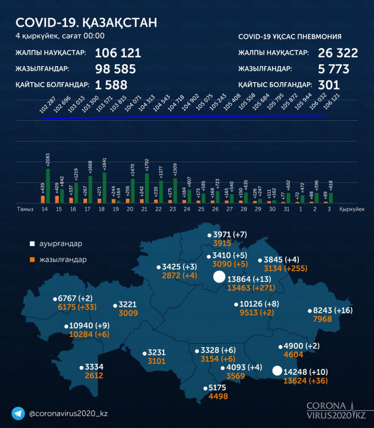 Итого выздоровевших в Казахстане - 98585.