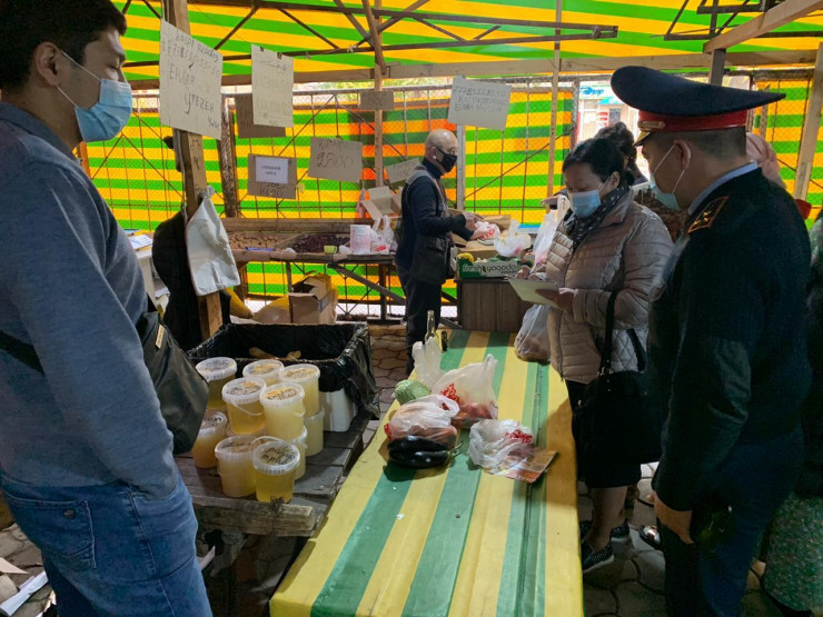 26 мониторинговых групп, в состав которых входят специалисты районных акиматов, местной полицейской службы, Управлений контроля качества и безопасности товаров и услуг, палаты предпринимателей, проводят ежедневные проверочные мероприятия.