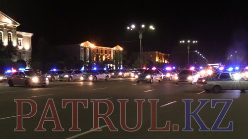 В преддверии празднования 25-летия казахстанской полиции они устроили горожанам на Центральной площади показательное выступление. Такое количество машин с проблесковыми маячками привлекло внимание всех, кто находился рядом.