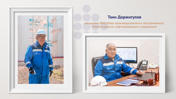 В Мангистауском нефтепроводном управлении трудятся два поколения семьи Доржигуловых. Глава династии Таин Косаевич - выходец из рабочей семьи. Он настоящий производственник. Работал в машиностроении и атомной энергетике, а в 2005 году пришел в КазТрансОйл. Более 13 лет руководил линейной производственно-диспетчерской станцией "Каражанбас". Участвовал в подключении вновь построенного нефтепровода Каламкас - Каражанбас - Актау, реконструкции оборудования на НПС "Каражанбас" и ГНПС "Каламкас".