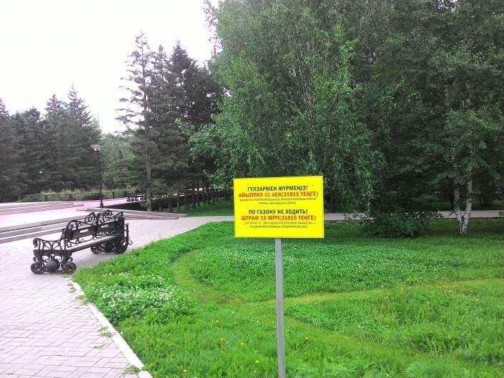 В местной полицейской службе Департамента внутренних дел Астаны объяснили смысл табличек, предупреждающих о высоких штрафах за ходьбу по газону, сообщает Tengrinews.kz.