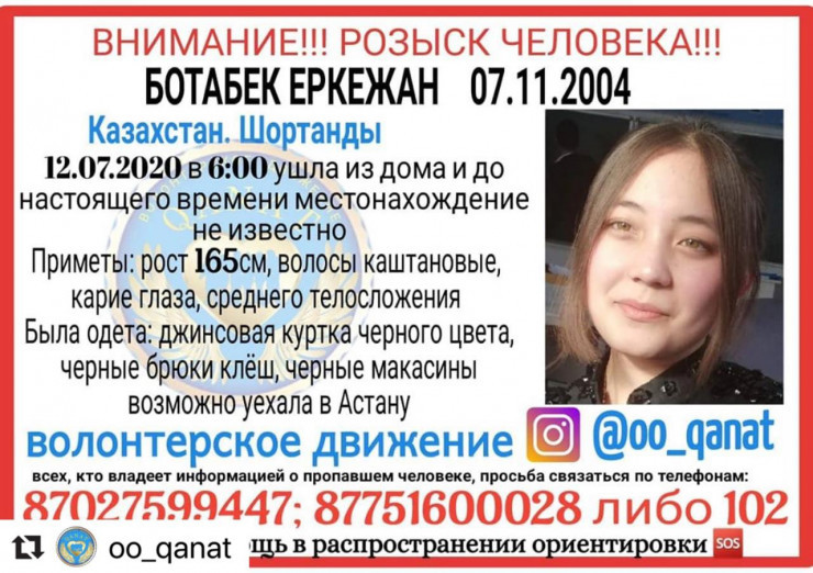 Поиски проводились на территории не только Шортандинского, но и соседних районов Акмолинской области, а также столицы.