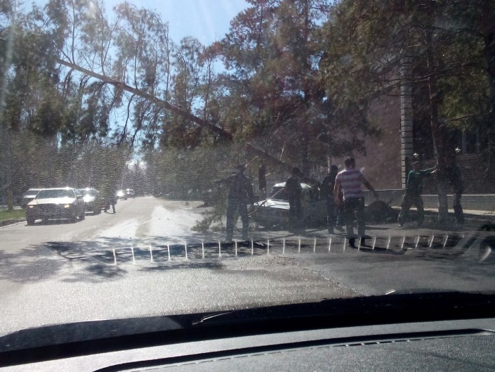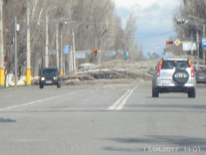 12 апреля с вечера в областном центре начался сильнейшей ливень. Ночью дождь прекратился и к утру поднялся ветер. В городе повалено несколько деревьев. Огромный карагач перекрыл движение по проспекту Абая. В некоторых районах города наблюдаются перебои с энергоснабжением. Не работают некоторые светофоры.