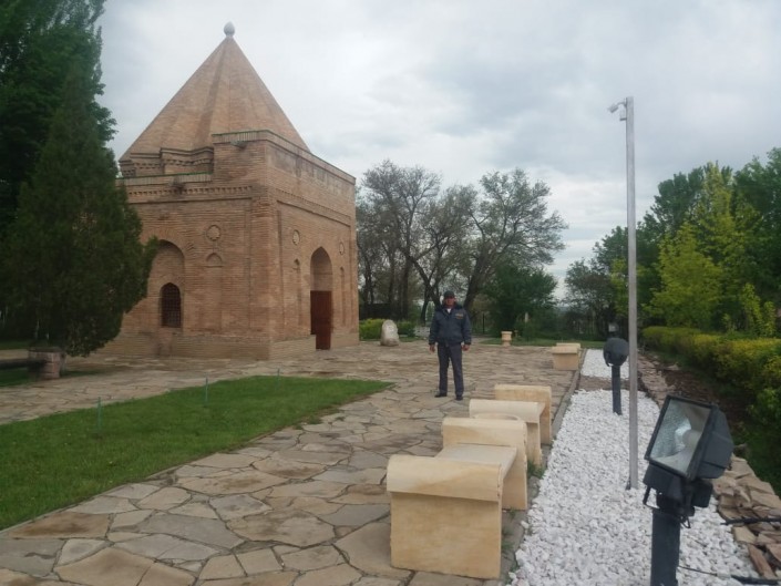 "Бұл жерге зиярат етіп келушілер өте көп. Күніне шамамен 200-ден аса адам келеді. Қауіпсіздігі жоғары деңгейде деп айта алмаймыз. Бірақ кесенелерге күзет қызметі қойылған, яғни екі күзетші ауысымға шығады. Қазіргі уақытта келесі айға деп, өрт сөндіру қызметтерімен айналысатын компаниялармен өрт қауіпсіздігі шараларын ұйымдастыруды, сонымен қатар, өртке қарсы дабыл қаққыш жүйесін орнатуды жоспарлап отырмыз", - дейді Сланов.