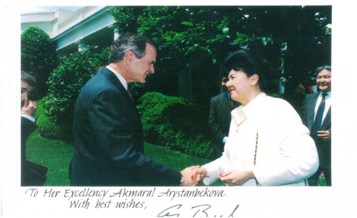 Ақмарал Хайдарқызы Джордж Бушпен. © e-history.kz