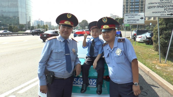"Ребенок тщательно подготовился к встрече: он был одет в полицейскую амуницию и был в отличном настроении. Адилету было интересно и весело принимать участие в патрулировании, сидя рядом с сотрудниками полиции. Малыш почувствовал себя настоящим полисменом. Отчасти так оно и есть, ведь каждый прожитый день для него проходит в борьбе и считается уже победным.