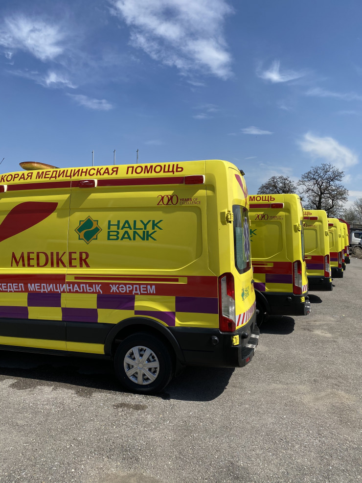 По запросу акимата города Алматы восемь мобильных центров на базе специализированных автомобилей скорой помощи Ford Tranzit, полностью укомплектованные современным медицинским оборудованием, приобретены председателем президиума Национальной палаты предпринимателей РК "Атамекен" Тимуром Кулибаевым и бизнесменом Кайратом Боранбаевым в качестве финансовой поддержки для борьбы с коронавирусной инфекцией COVID-19 в Казахстане.