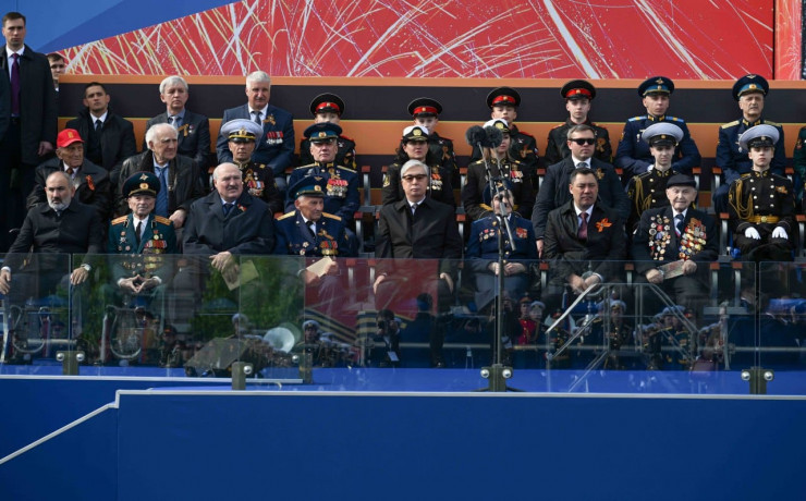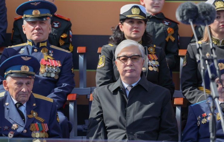 Наряду с Токаевым и президентом России Владимиром Путиным парад посетили президент Беларуси Александр Лукашенко, президент Кыргызстана Садыр Жапаров, президент Таджикистана Эмомали Рахмон, президент Туркменистана Сердар Бердымухамедов, президент Узбекистана Шавкат Мирзиеев, премьер-министр Армении Никол Пашинян.