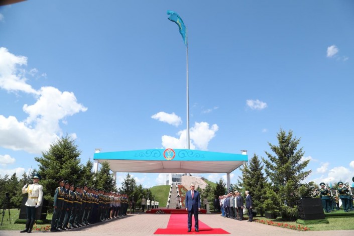 Президент Казахстана Касым-Жомарт Токаев поднял главный флаг страны в Нур-Султане и дал старт празднованию 21-летия столицы, передает корреспондент Tengrinews.kz.