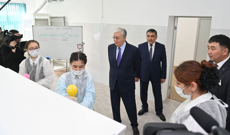 Президент Касым-Жомарт Токаев в ходе рабочей поездки в Жамбылскую область посетил среднюю школу в селе Коктал Байзакского района, передает Tengrinews.kz со ссылкой на пресс-службу Акорды.