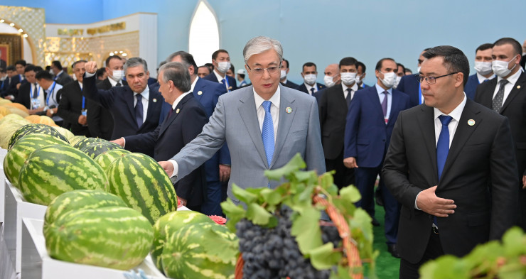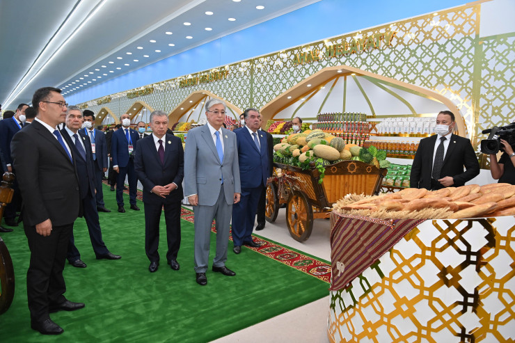 В рамках Консультативной встречи глав государств Центральной Азии Касым-Жомарт Токаев, Садыр Жапаров, Эмомали Рахмон, Гурбангулы Бердымухамедов и Шавкат Мирзиеев посетили выставку национальных товаров.