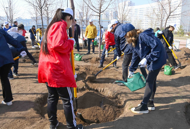 По словам акима Астаны Жениса Касымбека, в этом году на территории города планируется высадить более миллиона зеленых насаждений: саженцев различных деревьев и кустарников.