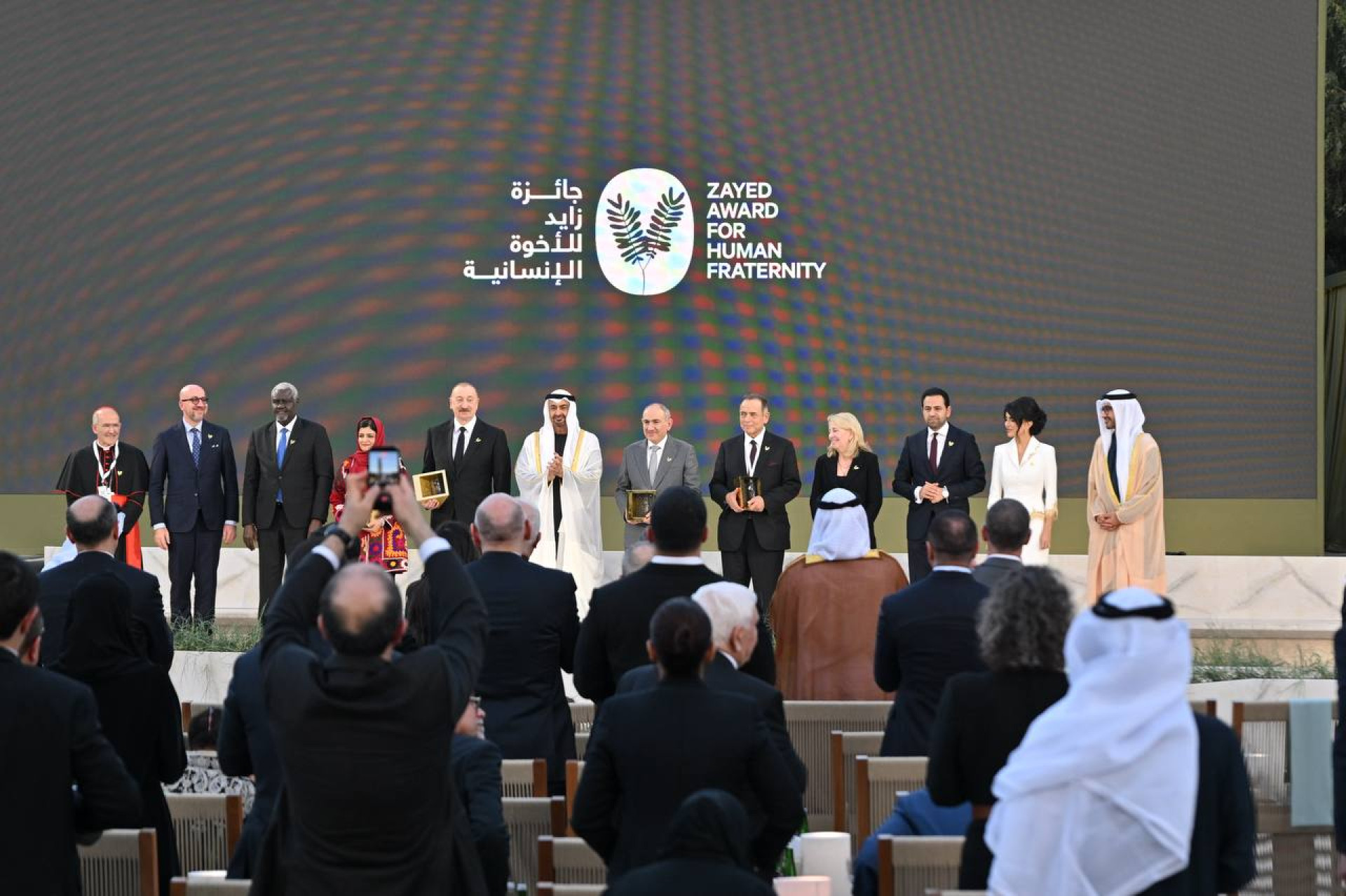 В своем видеообращении, которое показали в ходе состоявшейся церемонии в Абу-Даби, Глава государства поздравил президента Азербайджана Ильхама Алиева и премьер-министра Армении Никола Пашиняна с присуждением им премии имени шейха Заида "За человеческое братство".