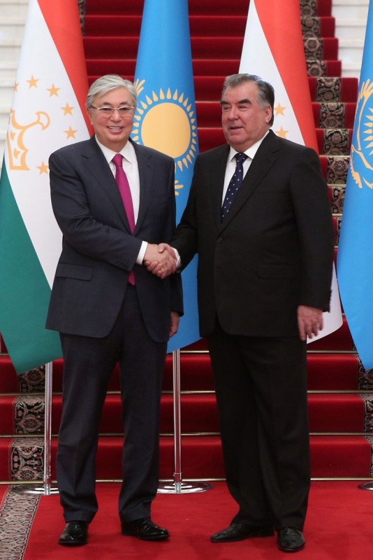 Президент Таджикистана поприветствовал Касым-Жомарта Токаева и подчеркнул, что это первый рабочий визит после его избрания руководителем страны.