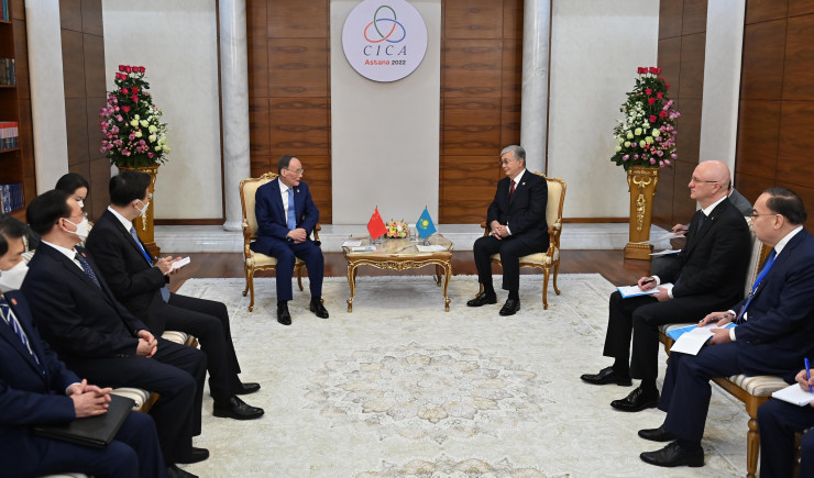 В свою очередь Ван Цишань передал Касым-Жомарту Токаеву слова приветствия председателя КНР Си Цзиньпина и отметил, что двусторонние отношения между Китаем и Казахстаном динамично развиваются в торгово-экономической, инвестиционной, транспортно-логистической, культурно-гуманитарной сферах, промышленной кооперации и цифровизации.