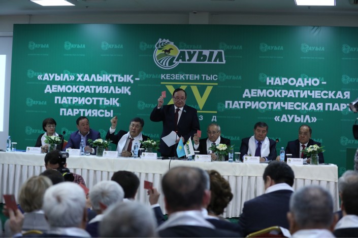 "Были разные мнения, были споры. Но сегодня на заседании политсовета партии пришли к единому мнению. Для выдвижения кандидатом в президенты от партии "Ауыл" предлагается кандидатура Рахимбекова Толеутая Сатаевича", - сказал председатель партии "Ауыл" Али Бектаев на внеочередном, XV съезде партии.