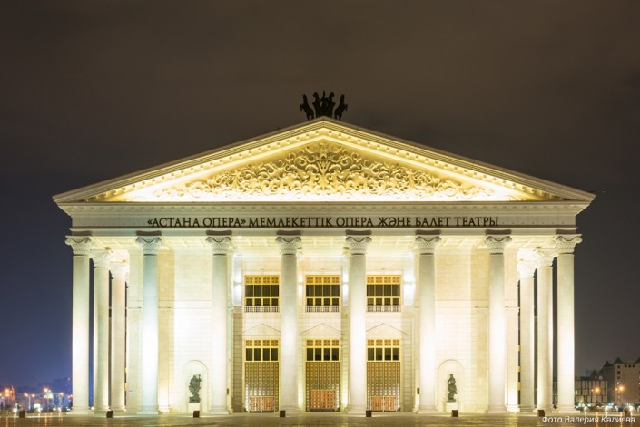 "Астана Опера" впечатляет не только своими масштабами, но и архитектурным изяществом. Колонны эпохи возрождения при профессиональном освещении придают зданию еще больше величия. Площадь самого здания равна 64 тысячам квадратных метров. Из них около 3 000 квадратных метров занимает сценическая зона. Главный зал театра рассчитан на 1 250 мест.