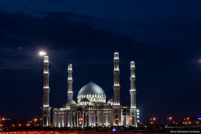 Мечеть "Хазрет Султан" - одна из крупнейших мечетей Азии, занимает площадь 11 гектаров и способна вместить до 10 тысяч человек. По мнению экспертов, мечеть имеет самую профессиональную и современную подсветку. Прожекторы белого цвета придают неповторимую красоту, подчеркивая каждую линию здания.