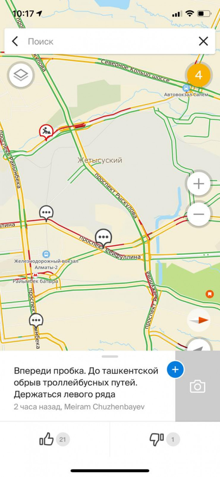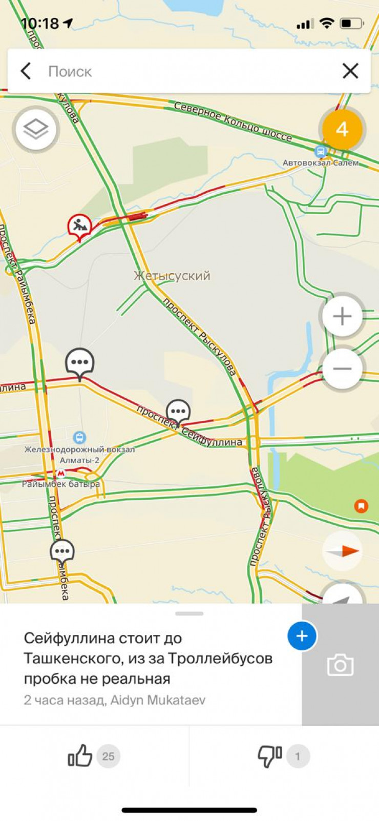 О пробках до Райымбека водители пишут в приложении 2GIS.