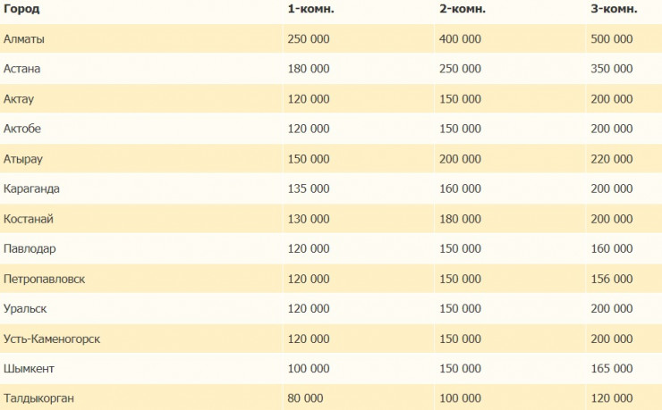 На 17 ноября средние цены на аренду жилья в РК такие: