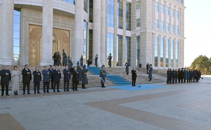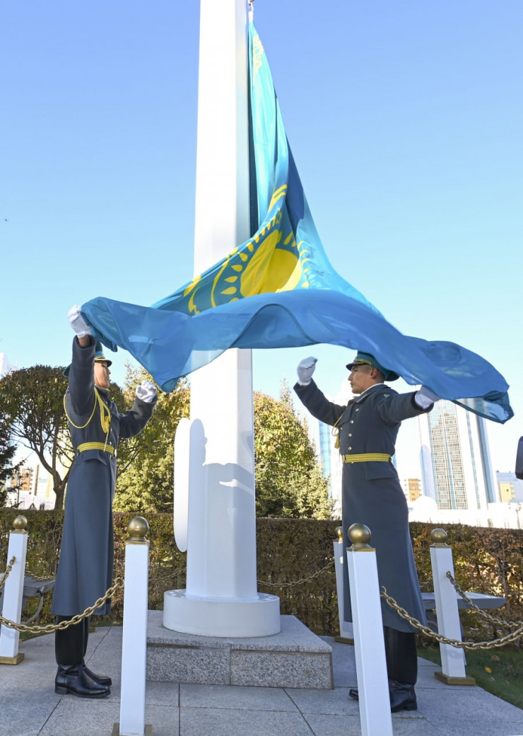 С участием Главы государства Касым-Жомарта Токаева перед резиденцией "Акорда" состоялась церемония поднятия Государственного флага, приуроченная ко Дню Республики, передает корреспондент Tengrinews.kz.