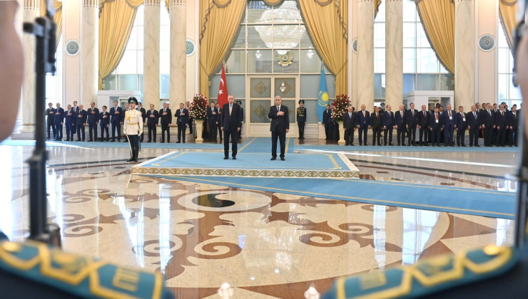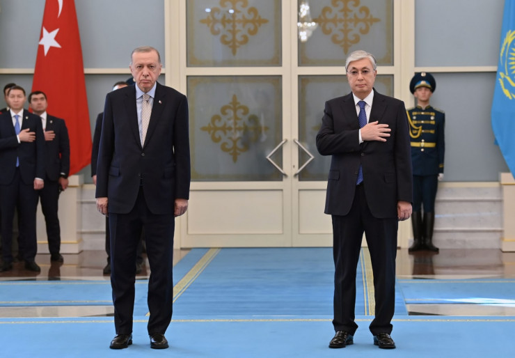 "Начальник почетного караула отдал рапорт лидерам стран, затем прозвучали гимны Казахстана и Турции", - говорится в сообщении.