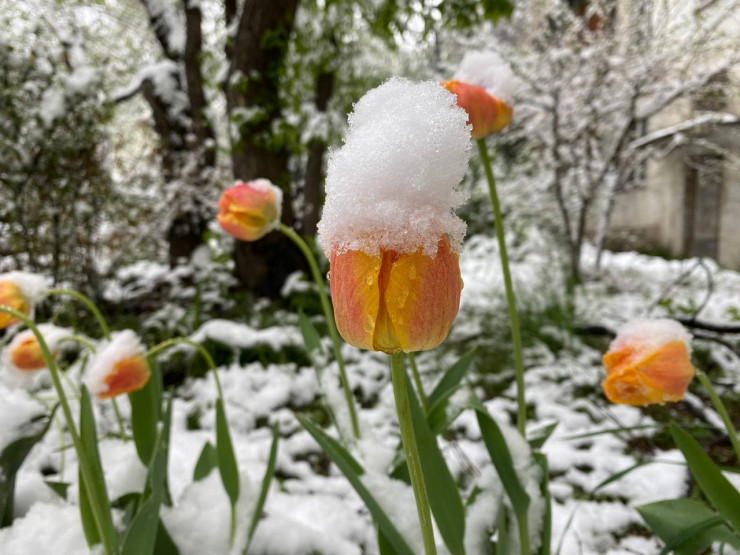 "Все равно самая красивая. Все равно я тебя люблю, Алматы. Любимый город. Климат очень нравится нам, живем здесь в пятом поколении", "Тюльпаны под снегом. Красота. Пусть подольше снег будет, а то аллергия начнется, это как фильтр", - пишут алматинцы.