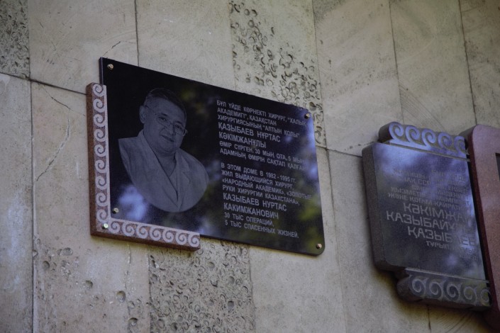 Известному хирургу Нуртасу Казыбаеву установили мемориальную доску в Алматы, передает корреспондент Tengrinews.kz. Мемориал находится на пересечении улиц Тулебаева и Казыбек би. Он установлен на фасаде дома, где жил выдающийся хирург.