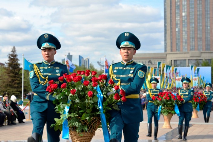 В честь 71-й годовщины Победы в Великой Отечественной войне в Астане состоялась торжественная церемония возложения цветов к монументу "Отан корғаушылар", сообщает Tengrinews.kz со ссылкой на пресс-службу Министерства обороны.