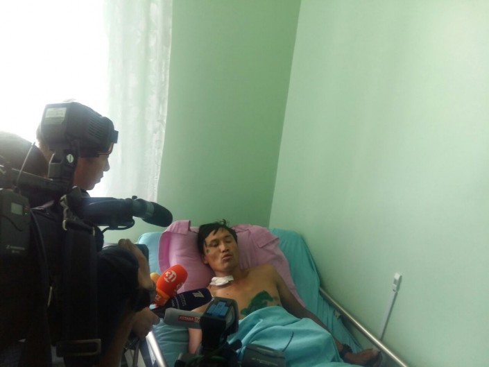 "Ему была оказана вся необходимая помощь. Сейчас его состояние оценивается как удовлетворительное, несмотря на тяжелые поражения. У него закрытая черепно-мозговая травма, множественные ушибы мягких тканей лица и головы, имеются перелом бедра, перелом костей таза, перелом позвоночника. Однако в настоящий момент он не нуждается в хирургическом лечении. Операция ему не требуется. Я выражаю уверенность в том, что у него все будет хорошо", - сказал главврач клинической больницы № 7 Алматы Марат Абдуллаев.