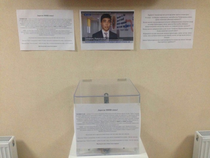 Урны для сбора средств в Алматы и Талдыкоргане.