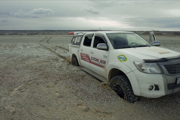 На высвобождение авто было потрачено почти два дня. В итоге экспедиция добралась до моря через Конграт (Каракалпакстан).