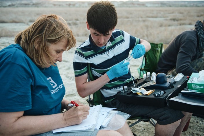 Ученые научно-познавательной экспедиции, целью которой является изучение гидробиологического состояния Северного и Южного Арала, отобрали в нескольких местах образцы планктона и воды.