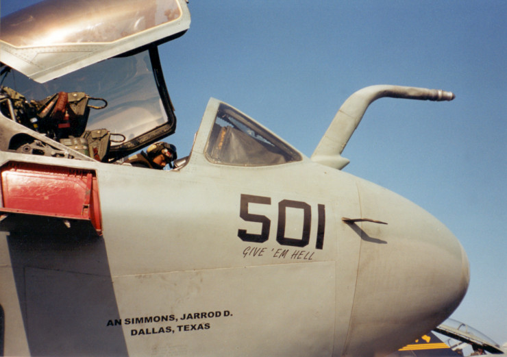На летной палубе. Слева - стоянка Grumman EA-6 Prowler. Справа - "суперхорнеты".