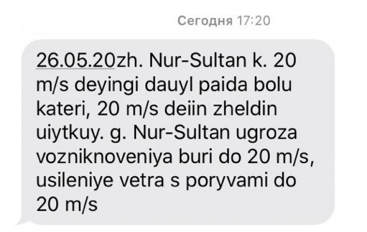 Угроза бури объявлена в Нур-Султане