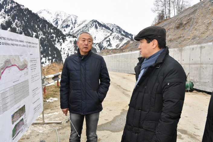 В рамках рабочего объезда Бауыржан Байбек проверил ход строительства защитного сооружения и укрепления скальных грунтов на опасных участках автодороги ГЭС-1 - БАО.