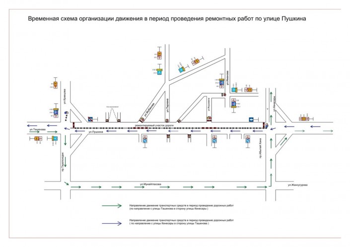 Также в период проведения ремонтных работ по улице Пушкина будет ограничено движение грузового транспорта.