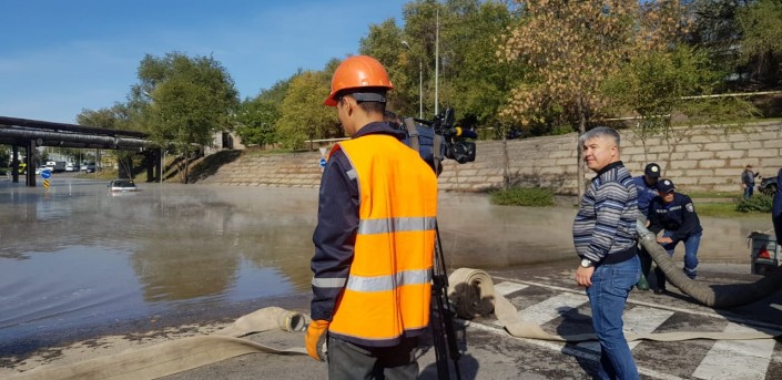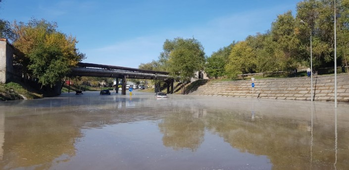 В Алматы произошел порыв теплотрассы. Улицу Бокейханова залило горячей водой. Сейчас на месте работают сотрудники аварийных служб. Tengrinews.kz публикует кадры с места ЧП.