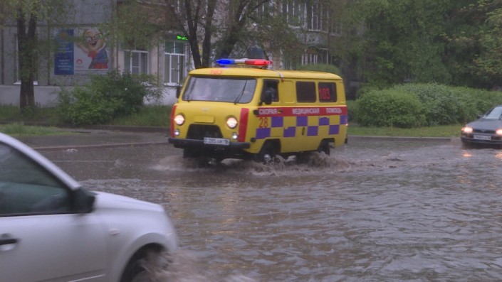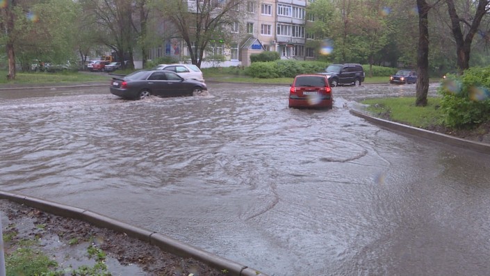 В очередной раз из-за осадков дороги областного центра превратились в реки. Водители старались аккуратно проплывать по улицам, но удавалось это далеко не всем.