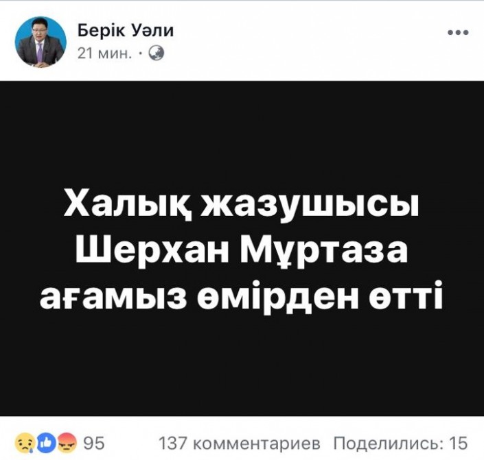 Умер известный казахский писатель Шерхан Муртаза.
