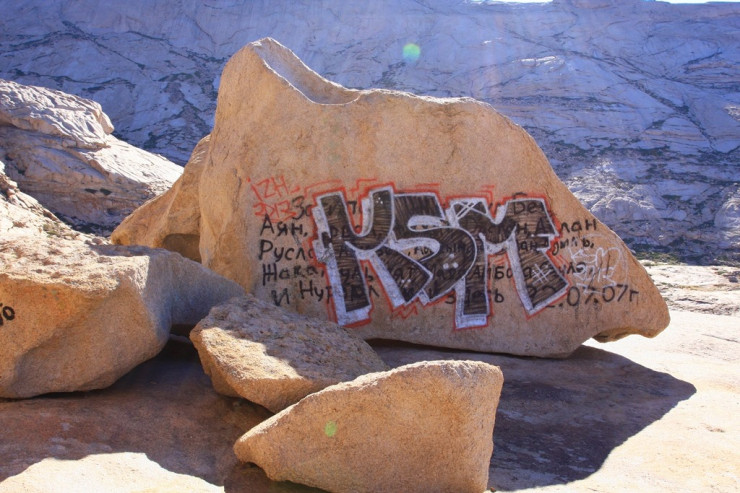 Уникальное урочище Бектау-Ата в Карагандинской области исписали красками Фото: facebook.com/Александр Петров