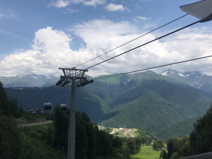 Протяженность канатной дороги "Кавказский экспресс" - 2370 метров. Виды вокруг потрясающие. Из окна движущейся кабинки особенно интересно наблюдать, как за несколько минут лето превращается в зиму: кроны деревьев меняют свой цвет и в некоторых местах виден снег", - рассказывает Аркадий Марков.