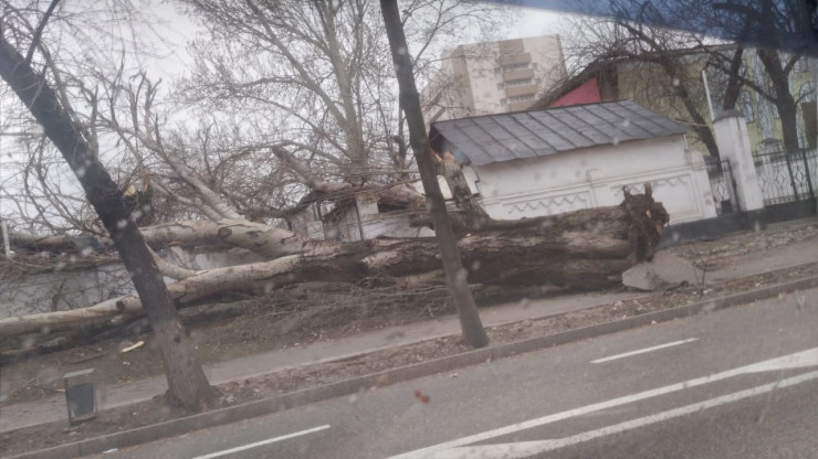 Упавшие деревья и сорванные крыши: последствия ветра в Алматы Кадры из видео