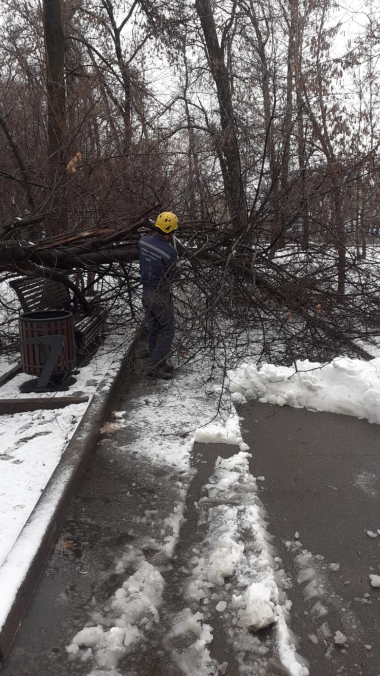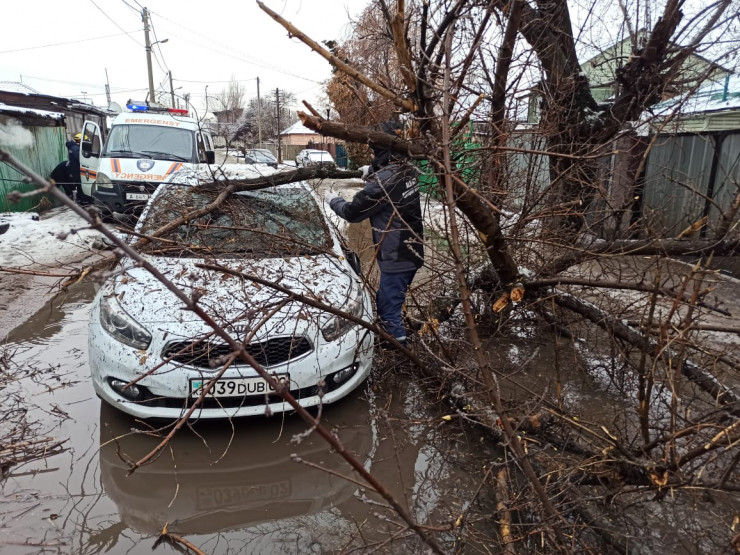 Упавшие после осадков деревья повредили автомобили в Алматы
