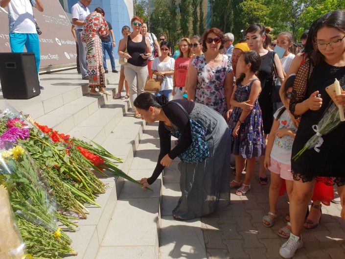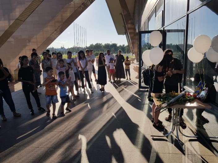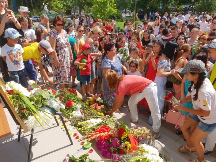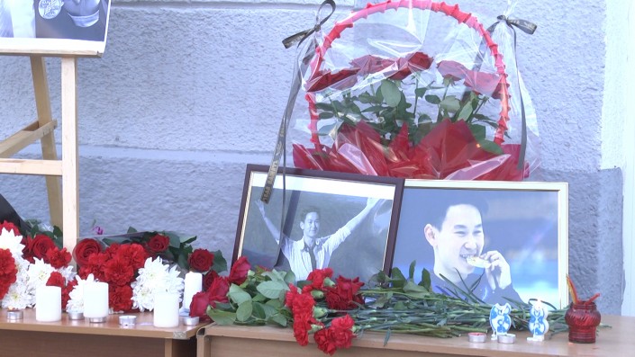 В Уральске у ледового дворца спорта собрались сотни горожан. У входа соорудили уголок, посвященный именитому спортсмену. Сюда люди несли цветы и мягкие игрушки. На экране демонстрировали фрагменты из выступлений Дениса Тена.