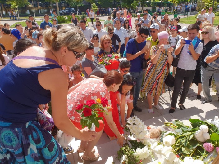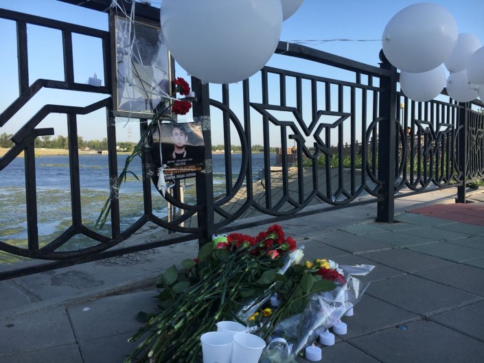 Семей не остался в стороне от трагедии. На набережной Иртыша собрались люди разных возрастов, они пришли выразить свои соболезнования и скорбь по погибшему спортсмену. Многие держали в руках  фотографии Дениса.